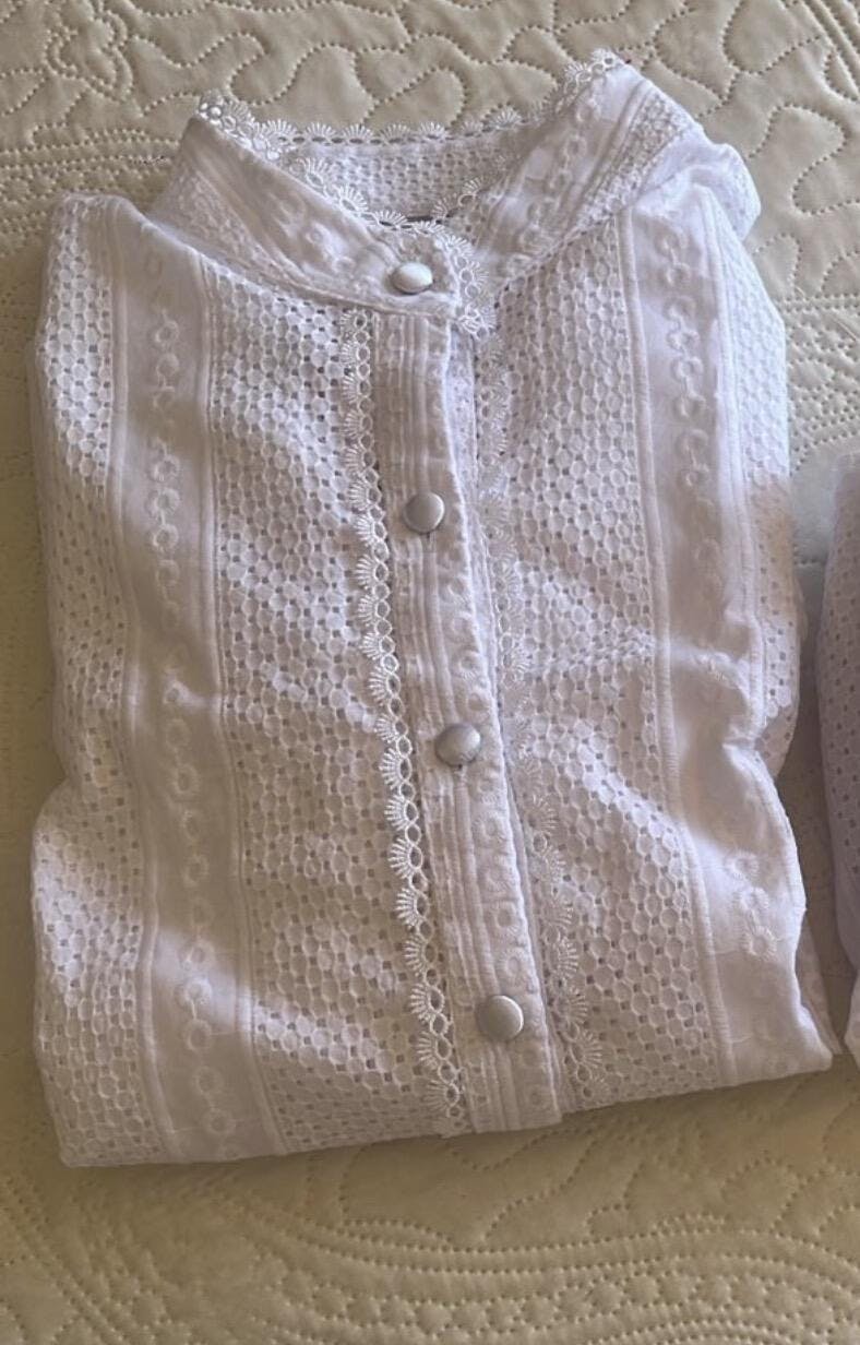 Hecho 100% en algodón orgánico, el Top Raíz combina frescura y suavidad, realzado por una delicada tira bordada que aporta textura y resalta su esencia artesanal. Su acabado tipo lace refuerza el carácter atemporal de la pieza, mientras que el diseño de cuello y puños con remates sutiles y los botones forrados en algodón subrayan la intención artesanal en cada costura.
